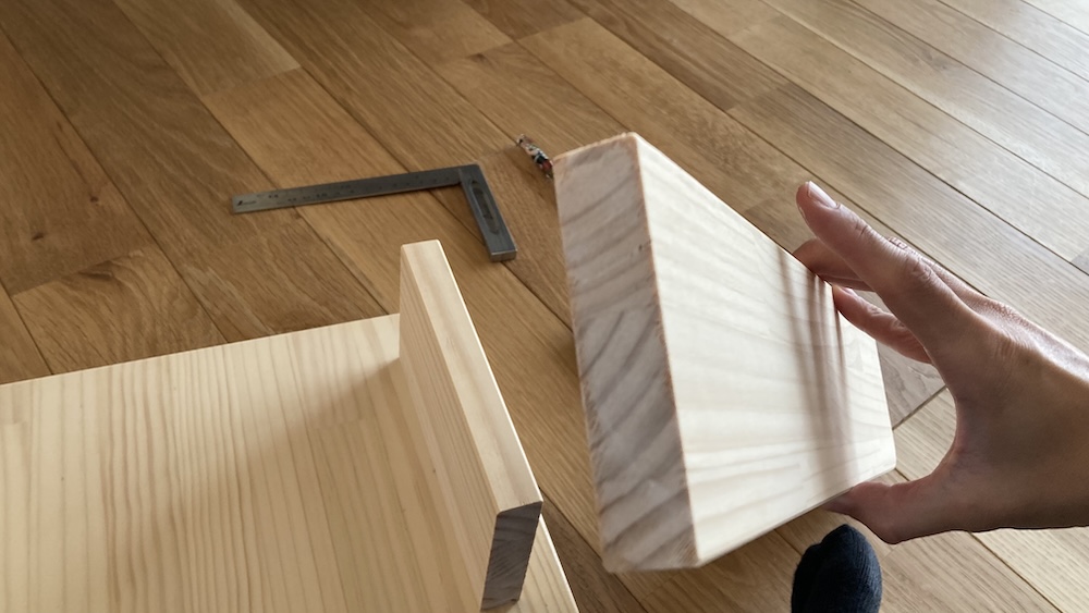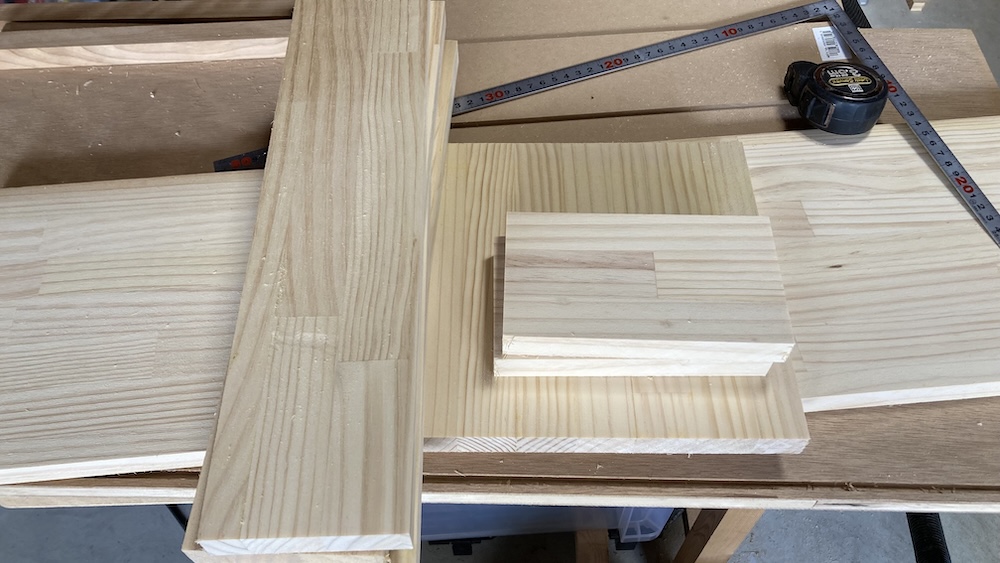 ダンボールストッカー自体がそんなに大きくないので、材料は家に余っていたパイン集成材を使うだけで十分だった。