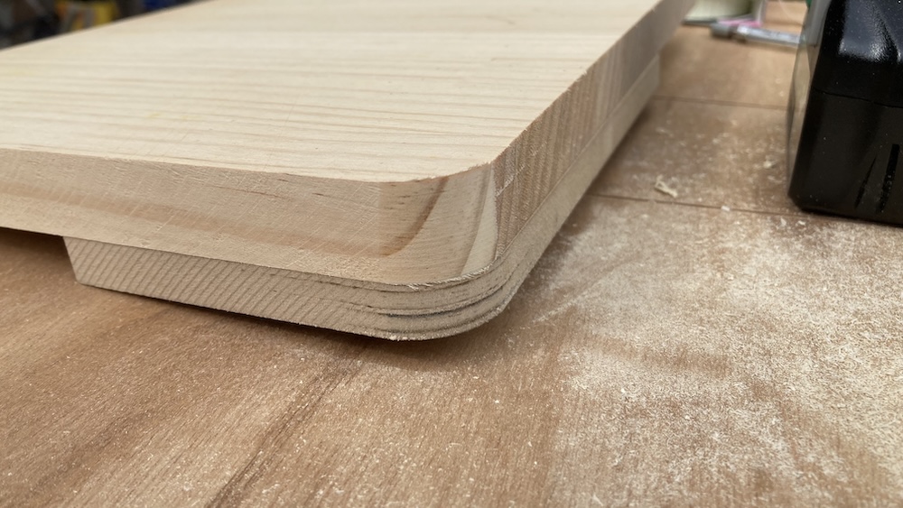これでR加工用の型は完成した。次はトリマーを使って倣い加工の実践や!