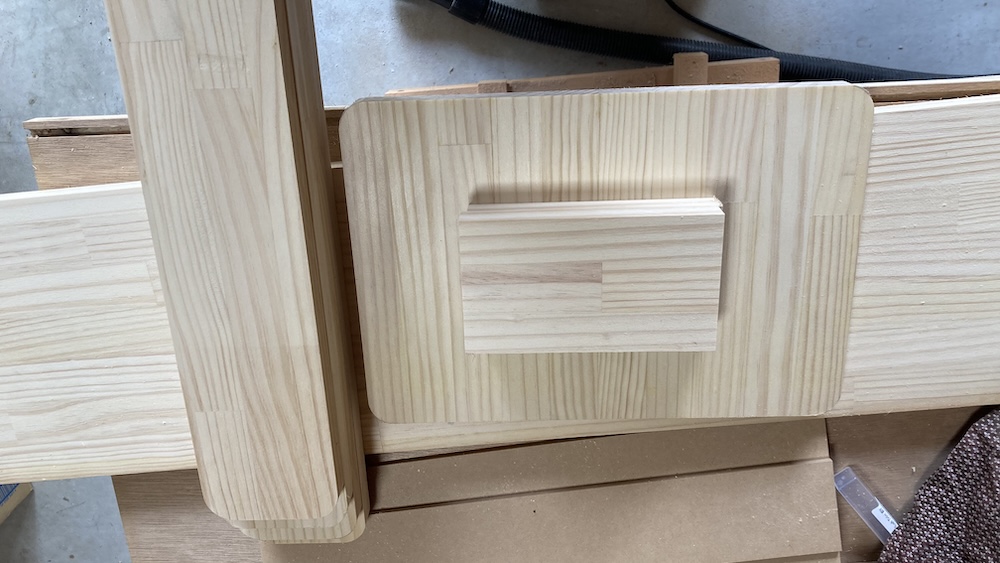 今回は同じR加工を10箇所以上するので、簡単な型を作ってトリマーを使った倣い加工をすることにした。