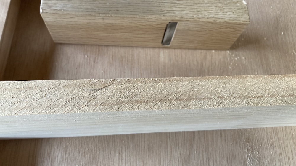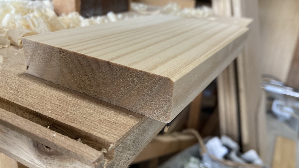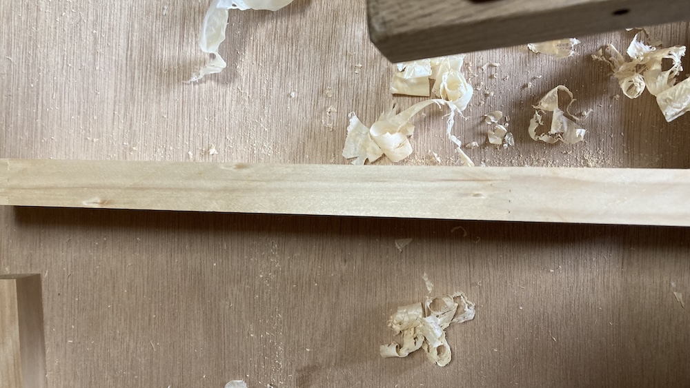 木端は幅が狭くサンダーでは難しい部分なのでカンナで削ることにした。カンナは難しいイメージがあるかもしれないけど、木端ぐらいなら意外とけっこう簡単に上手く削れると思う。
