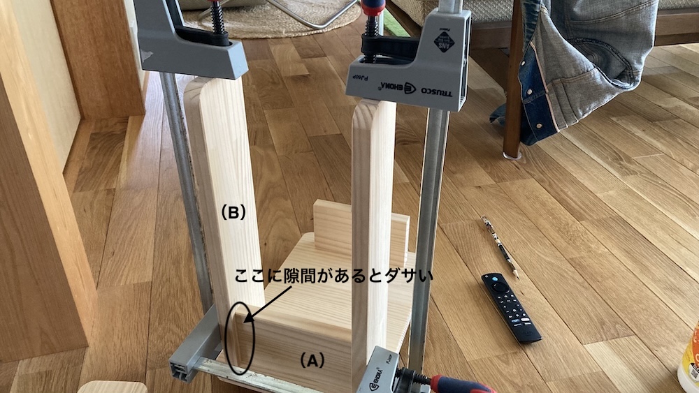 今回で言えば、短い材料(A)の側面と長い材料(B)のくっつくところがめちゃくちゃ大事だと思う。