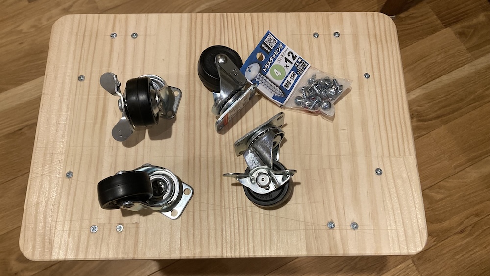 キャスターは特に悩むこともなく、良い感じに4隅にビスで取り付けるだけ。ビスはトラスタッピング。