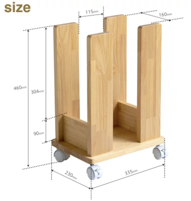 妻から送られてきたダンボールストッカーの商品紹介ページにはご丁寧にもことこまかに寸法が記載されていたので、ありがたくその寸法をパk参考にさせてもらうことにした。